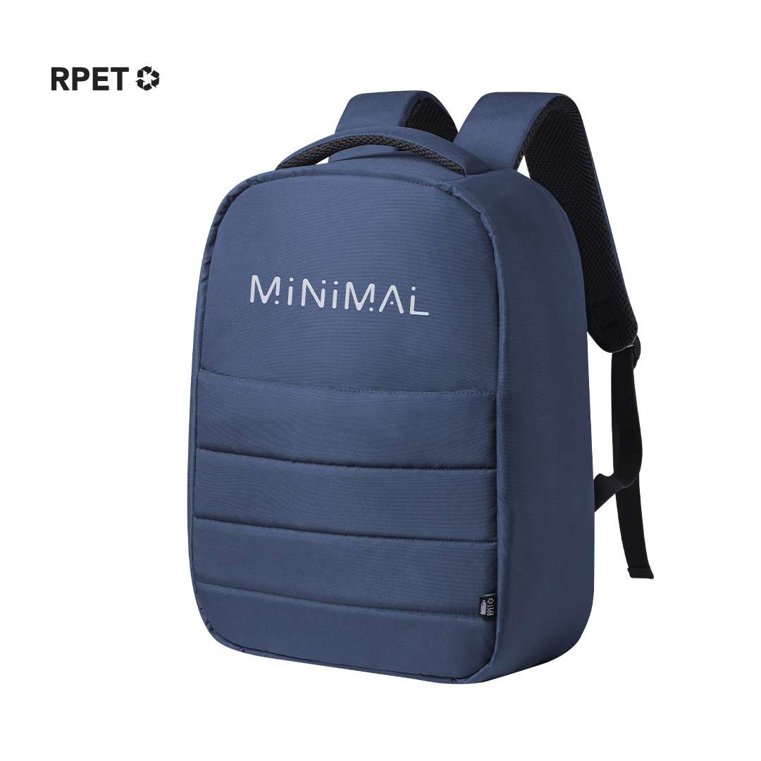 "Zaino antifurto della linea natura realizzato in resistente 300D RPET, con design urbano e imbottitura completa. Con tasca antifurto e attacco per trolley. Scomparti interni imbottiti per laptop fino a 15" e tablet fino a 12". Spallacci e schienale imbottiti. Distintivo RPET sull'etichetta.Realizzato in plastica riciclata per incoraggiare il riutilizzo dei rifiuti plastici e contribuire alla sostenibilità del pianeta".