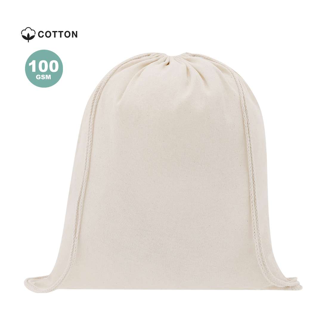 Sacca con corda spessa in materiale cotone con finitura morbida in colore naturale. Con corde autoaggancianti abbinate.