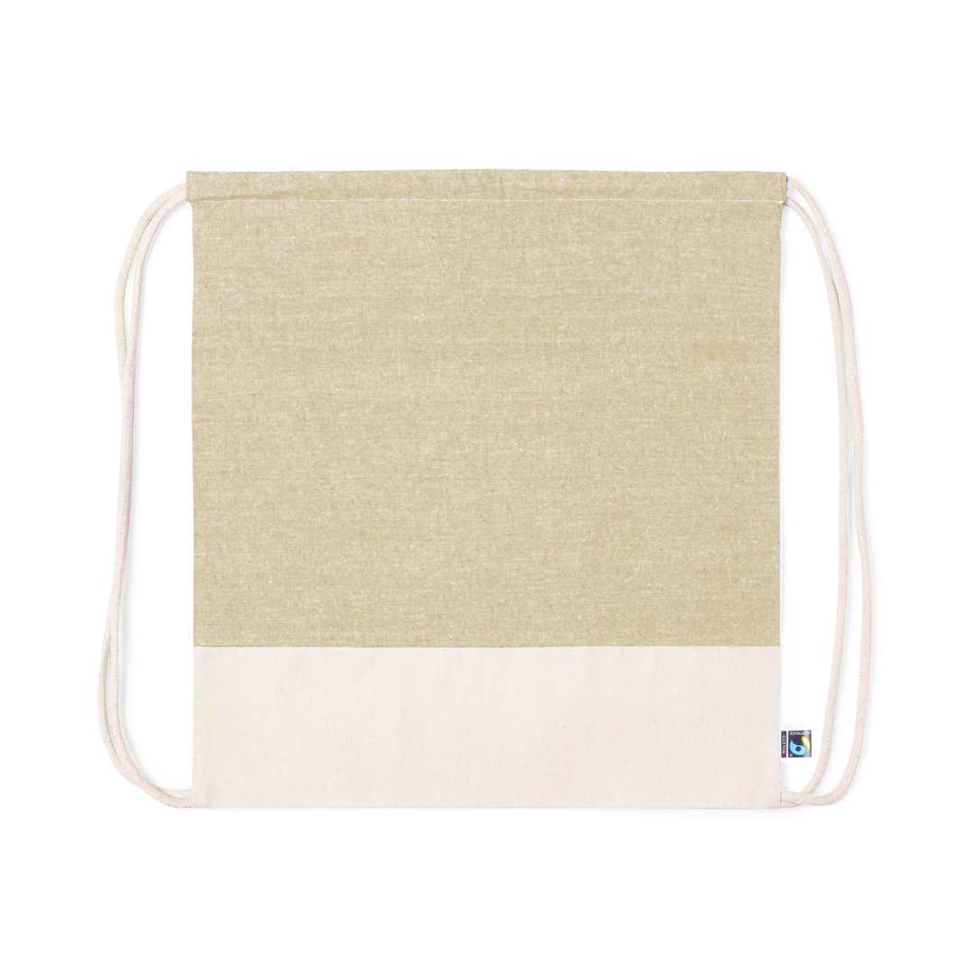 Zaino in corda della linea natura, realizzato in cotone 140g/m2. Certificato Fairtrade, un sistema di commercio solidale e alternativo al commercio convenzionale che persegue lo sviluppo dei popoli e la lotta alla povertà. Finitura cucita e corde in cotone abbinate base in tonalità naturale e parte anteriore superiore disponibile in nero e in tonalità naturale. Etichetta Fairtrade e cartellino su cartone riciclato inclusi.