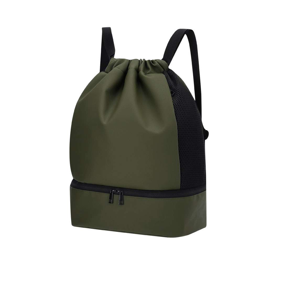 Zaino in morbido PU con compartimento principale con chiusura a corda e piccolo taschino interno con chiusura a zip. Include tasca alla base per scarpe con chiusura a doppia zip e tasche frontali con chiusura a zip di accesso rapido. Con lati traspiranti e spallacci regolabili.