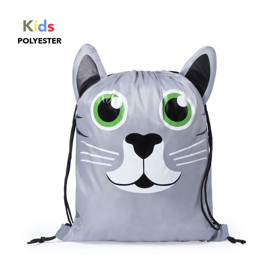 Sacca per bambini, in morbido poliestere 210T con originali disegni di animali. Con corde nere autobloccanti e angoli rinforzati. Dimensioni ridotte.