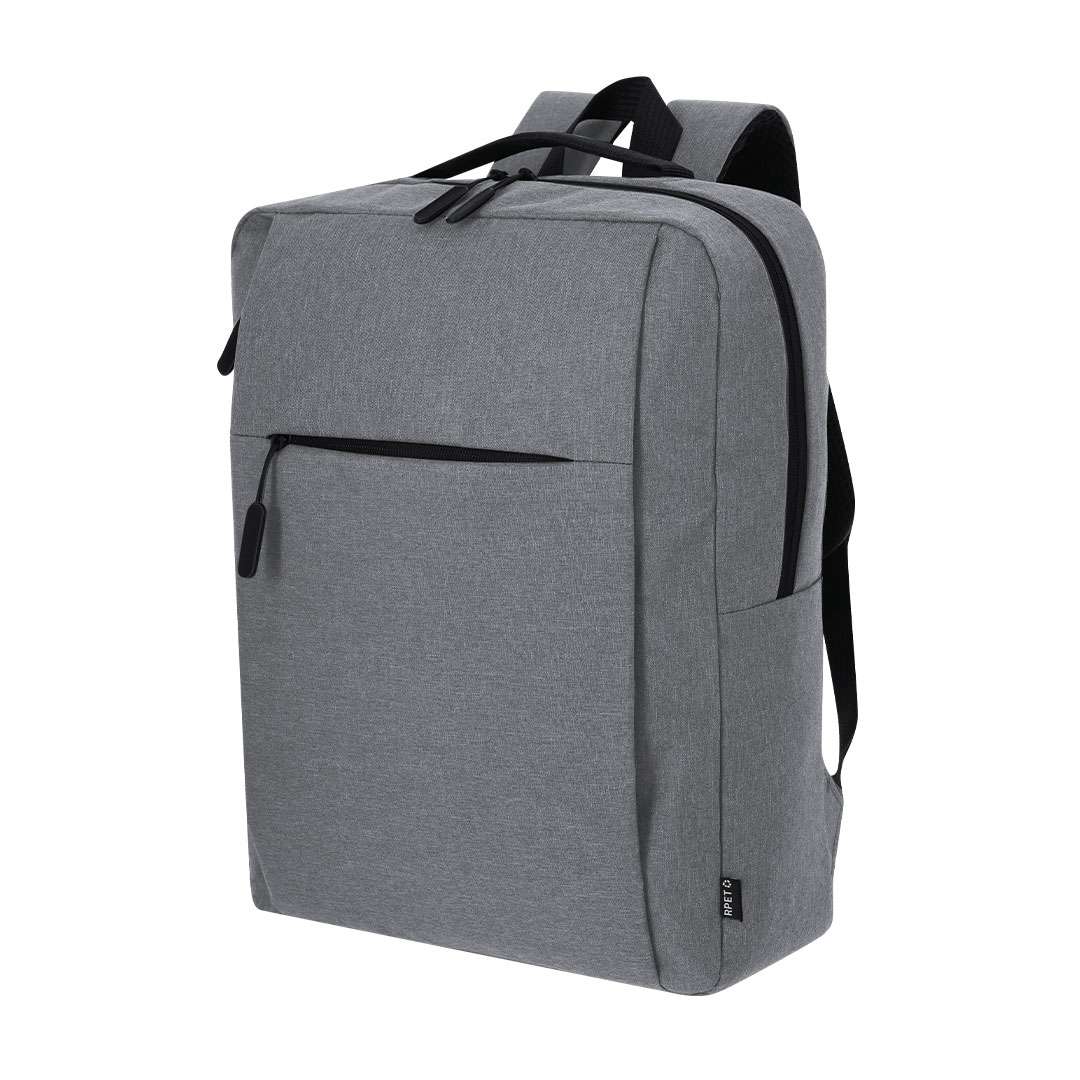 Zaino realizzato in morbido poliestere RPET 600D. Con tasca principale di chiusura a zip con doppio tiratore. Tasca interna per laptop fino a 15 pollici. Include due tasche frontali con chiusura a zip invisibile e tasche laterali. Schiena e cinghie imbottite regolabili. Include cinghia di trasporto per il fissaggio a trolley o valigia, ideale per i viaggi. Con distintivo di RPET su etichetta.Il materiale RPET è realizzato con plastica riciclata, per promuovere il riutilizzo dei rifiuti plastici e contribuire alla sostenibilità del pianeta.