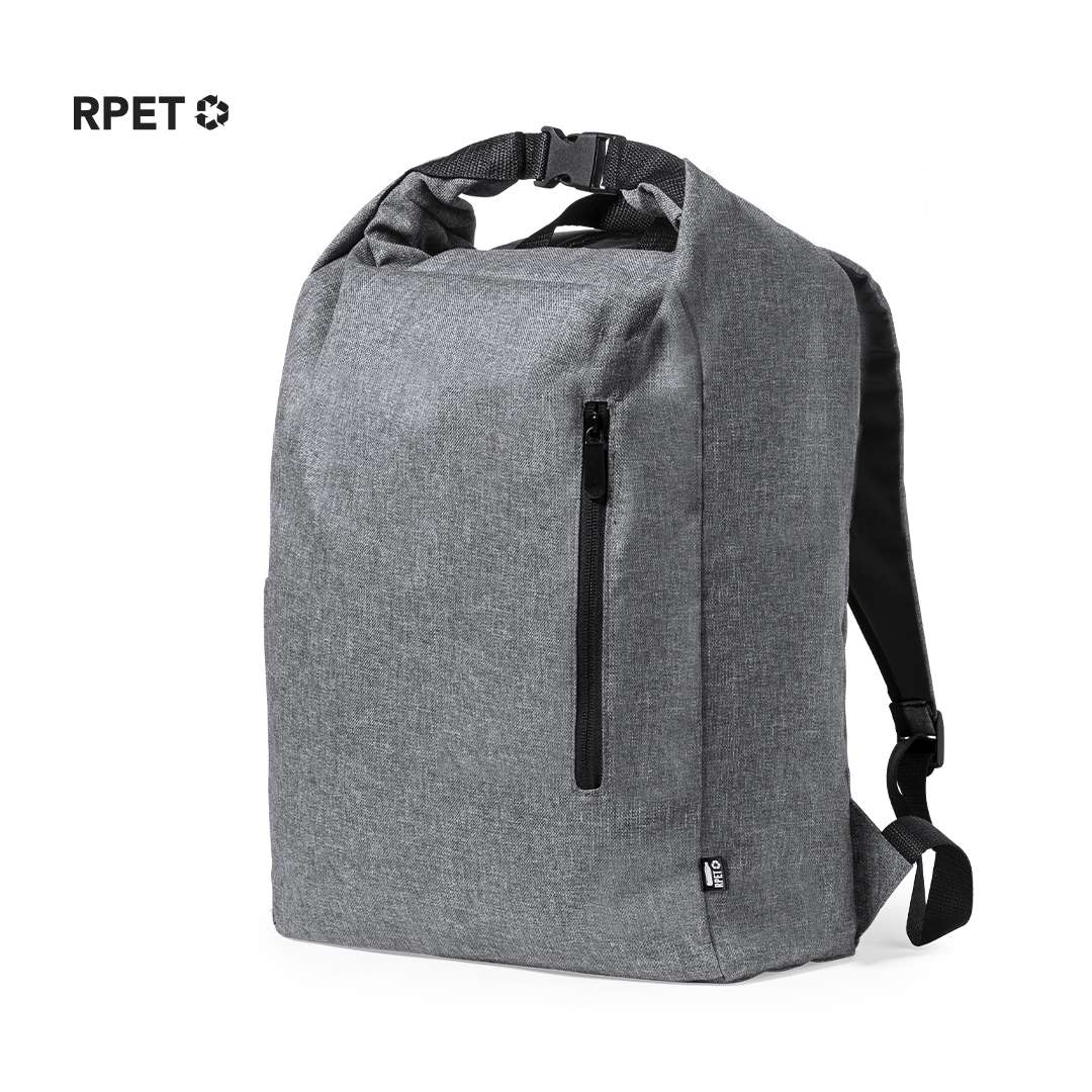 Zaino della linea Natura realizzato in resistente 300D RPET, plastica riciclata, per incoraggiare il riutilizzo dei rifiuti plastici e contribuire alla sostenibilità del pianeta. Tasca principale con chiusura a fibbia e tasca laterale. Spallacci imbottiti regolabili e distintivo RPET sull'etichetta esterna.