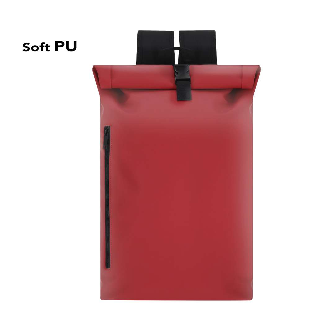 Zaino realizzato in morbido PU. Con tasca principale e sistema di chiusura a fibbia. Ampia capacità interna, con scomparto imbottito per laptop fino a 15 pollici. Con tasca frontale con cerniera e schienale imbottito. Manici regolabili e imbottiti.